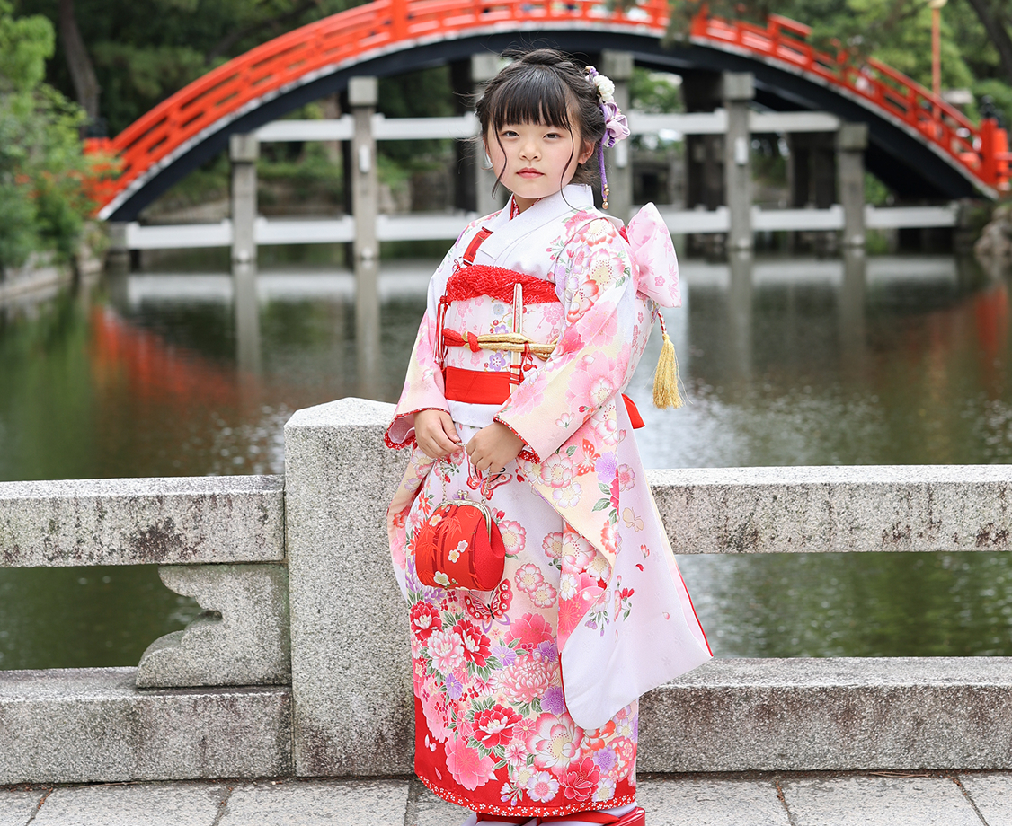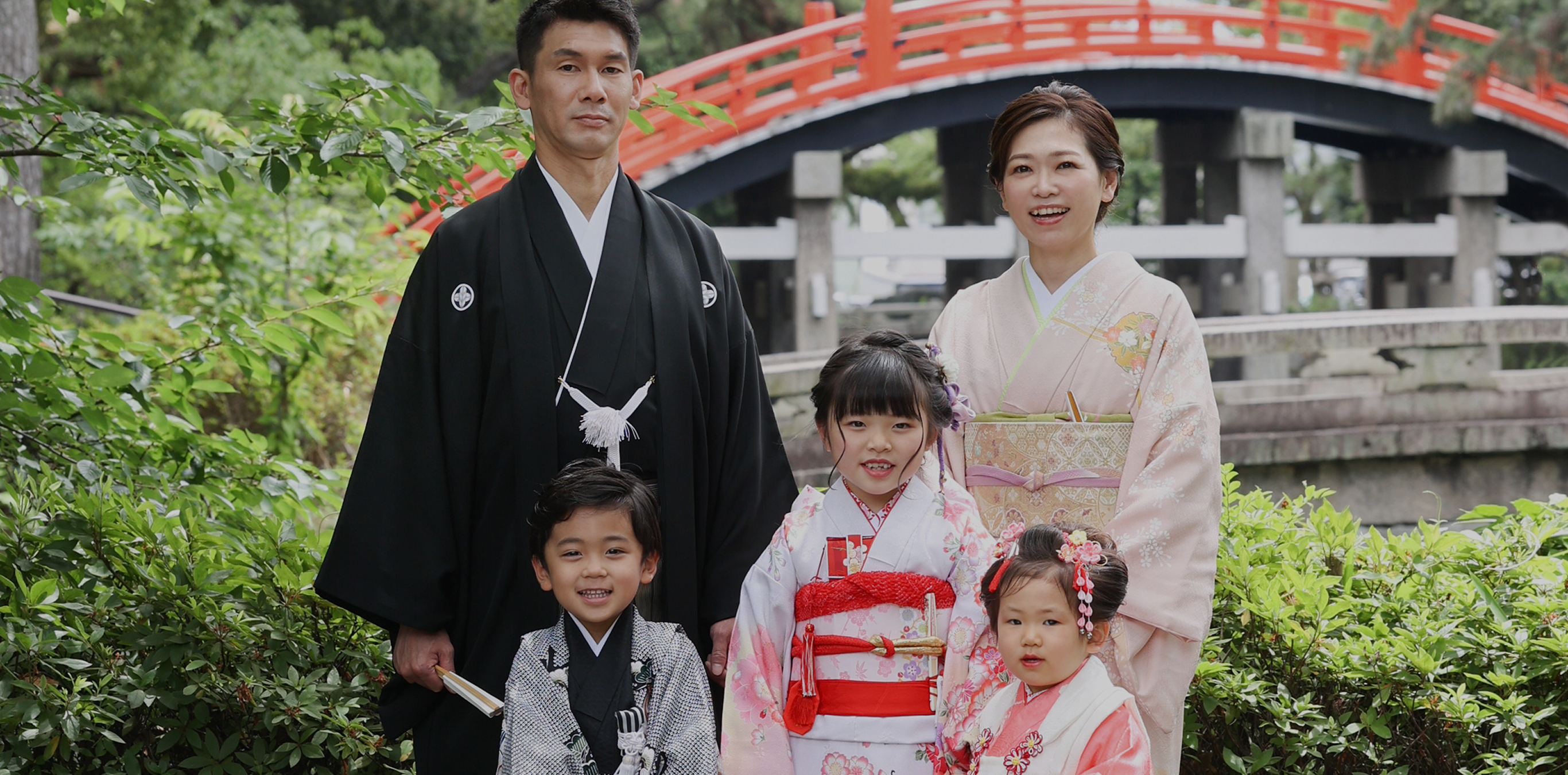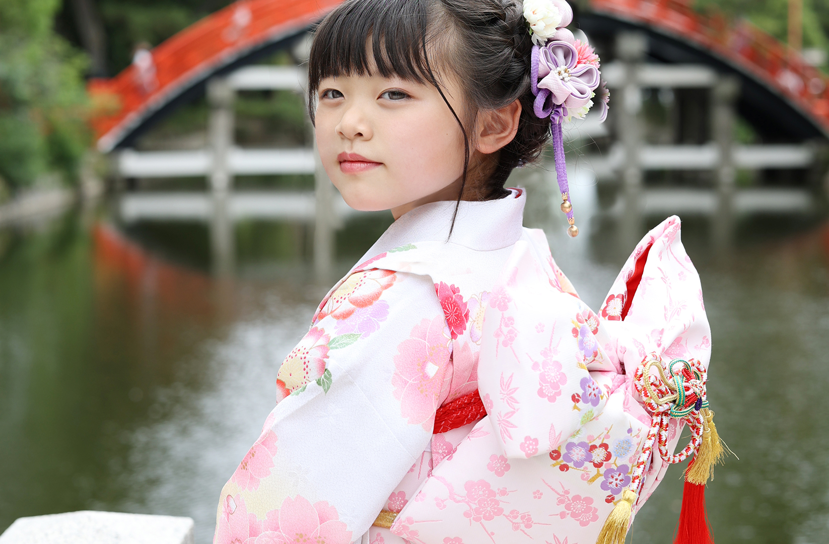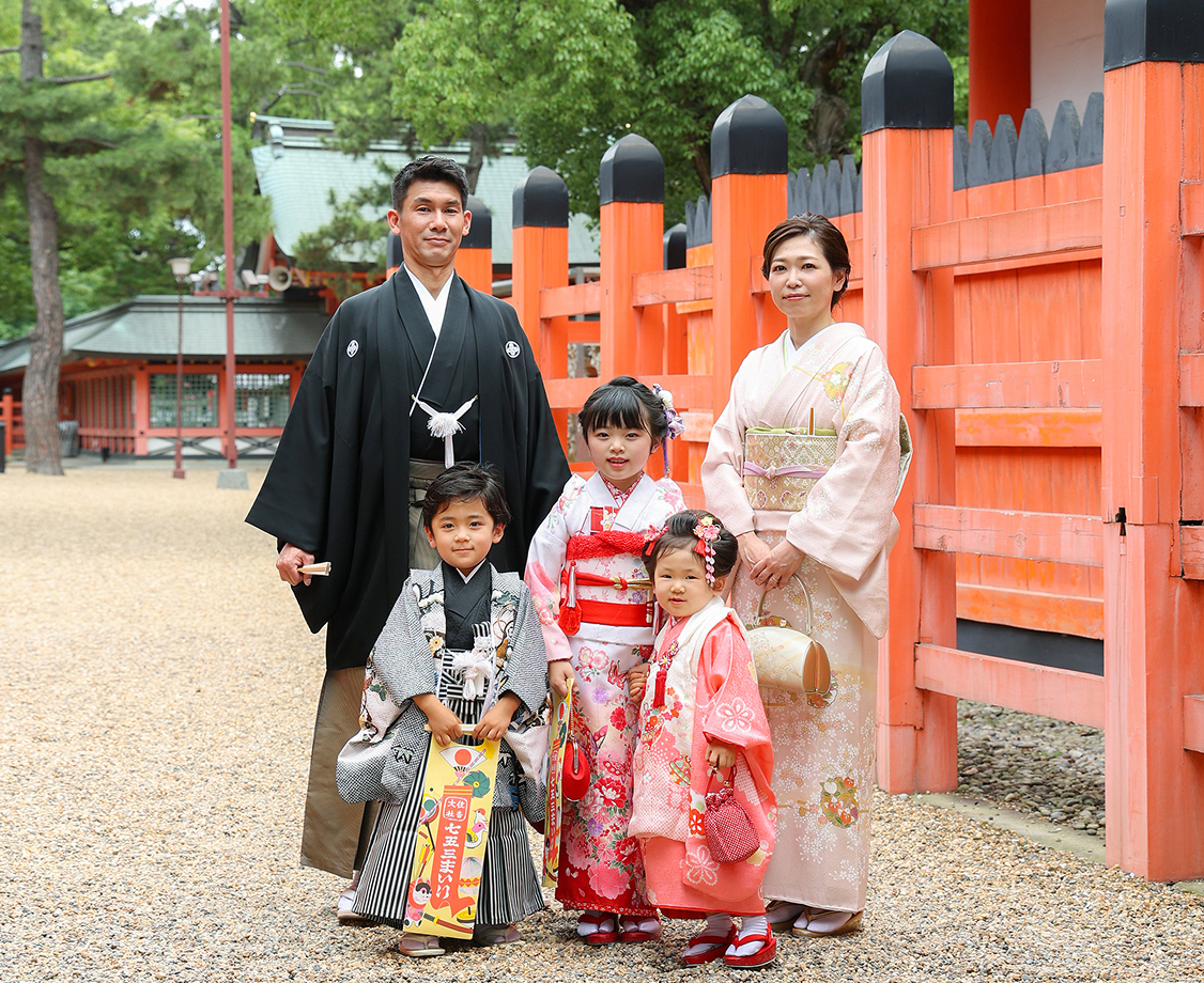 七五三という人生を記念する日には住吉大社吉祥殿をご利用ください。特別な日に、特別な装いで、ご家族とお子様にとって晴れの日を迎えた記念に。お衣裳レンタル、お着付け美容、ご記念写真すべて取り揃えております